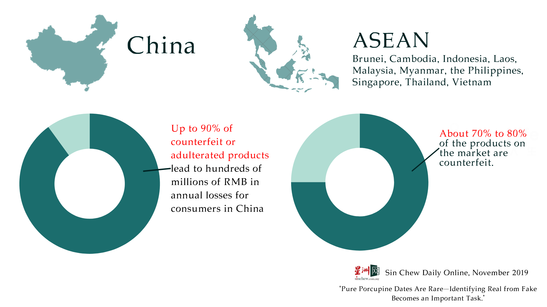 According to a report by Sin Chew Daily (November 2019), "Pure Porcupine Bezoars Are Rare – Identifying Authenticity Becomes a Key Task", the demand for porcupine bezoars in China and Malaysia has continued to rise, fuelling the widespread circulation of counterfeits. In ASEAN member states, an estimated 70–80% of the bezoars on the market are fake. The situation is even more severe in the Chinese market, in which up to 90% are either counterfeit or of impure quality. This trend not only causes financial losses for consumers but also poses potential health risks.